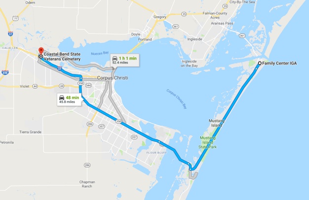 If you are in the greater Corpus Christi area and wish to drive to his funeral on I-37, here is our itinerary: